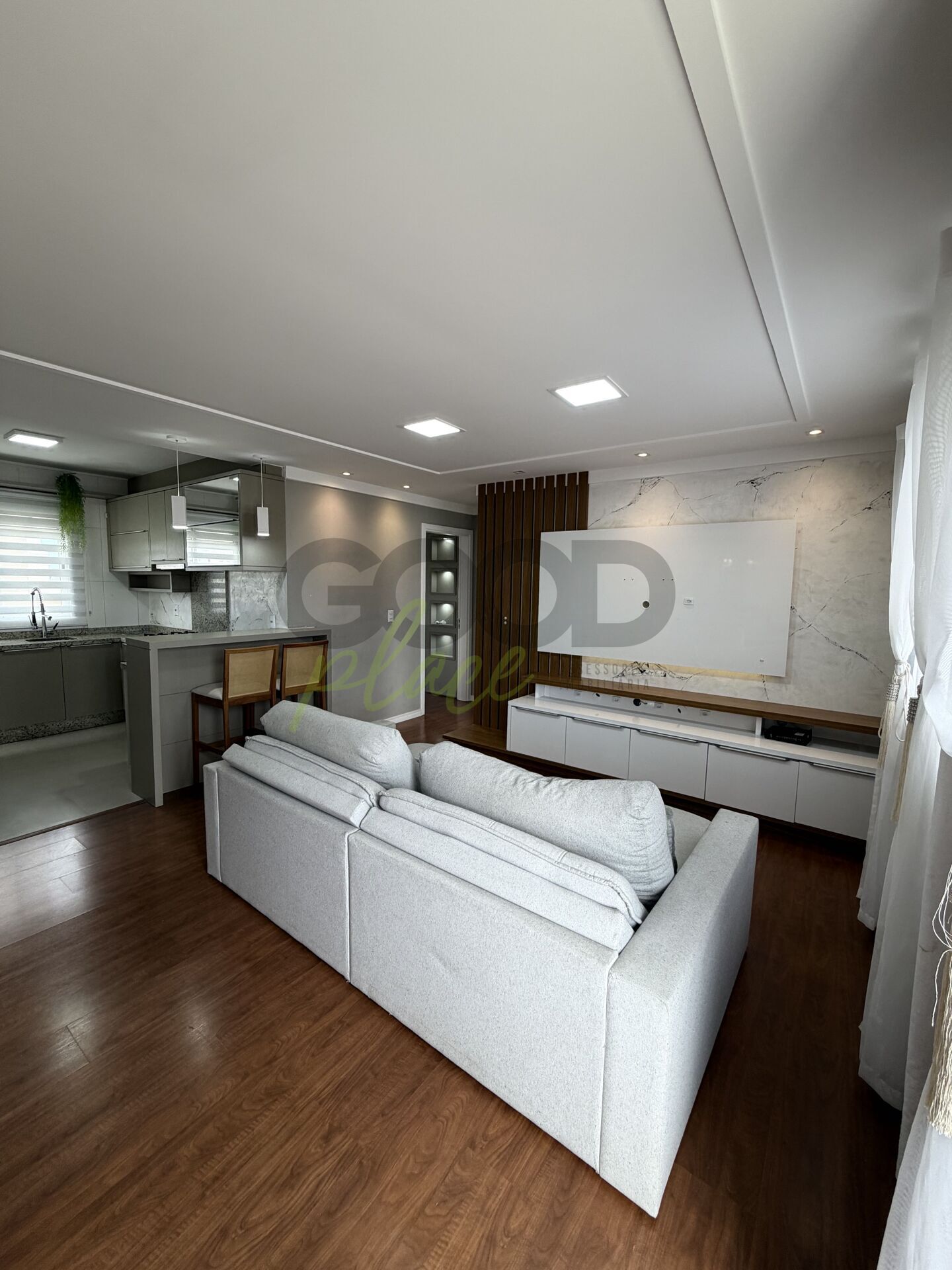 2 Dormitórios, sendo 1 suíte2 Banheiros1 VagaGaragem Coberta1 Sala de TV1 Cozinha1 Sala de jantar1 Sala de estar1 Área de serviço