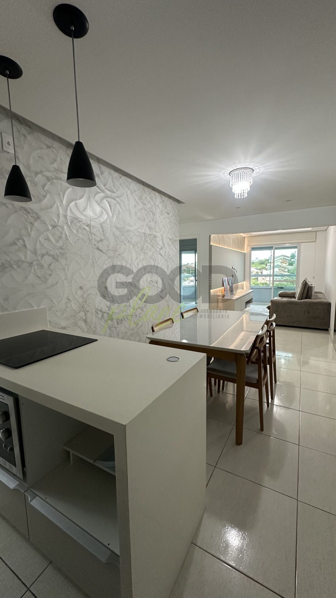 A área social possui sala e cozinha integradas, proporcionando um espaço funcional e aconchegante. A sacada com churrasqueira é perfeita para momentos de lazer e confraternização.