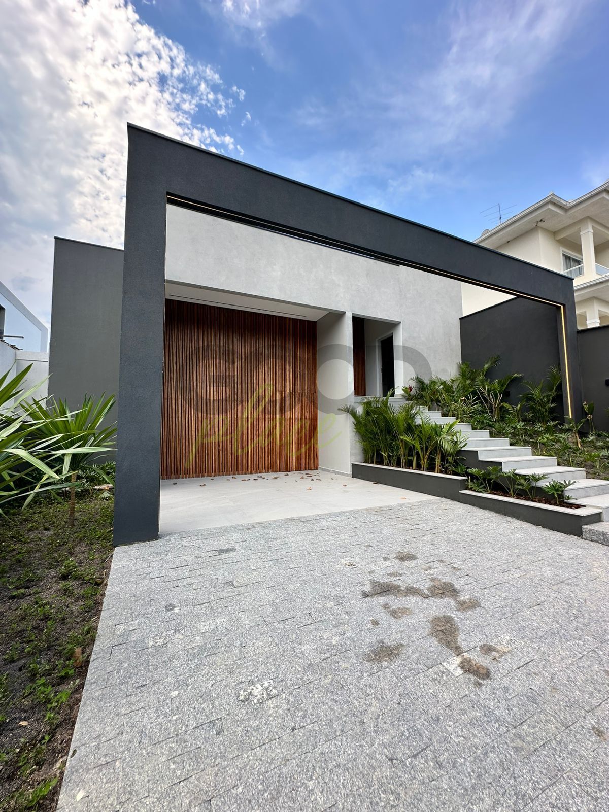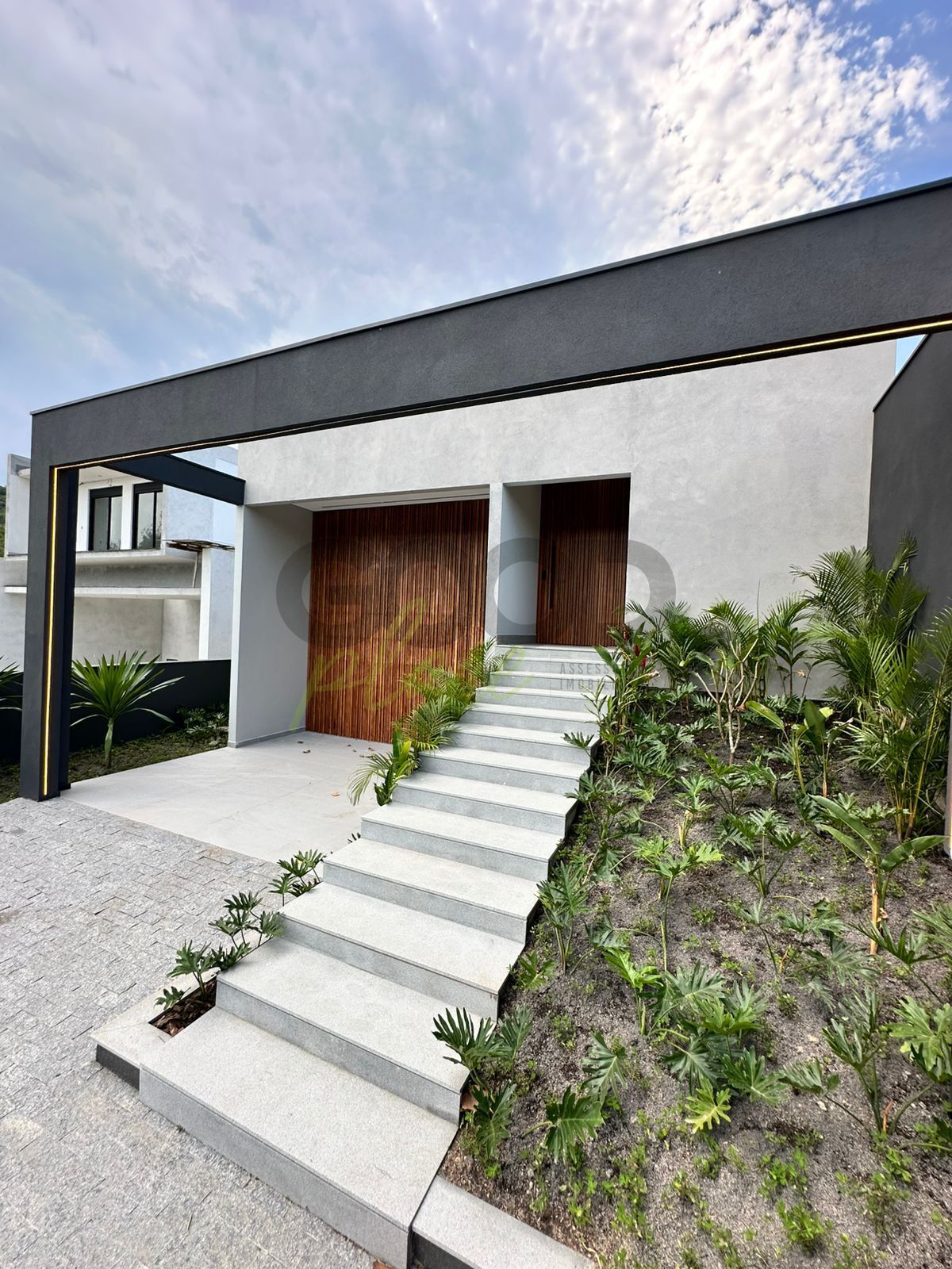 - Esquadrias de alumínio na cor cinza chumbo;